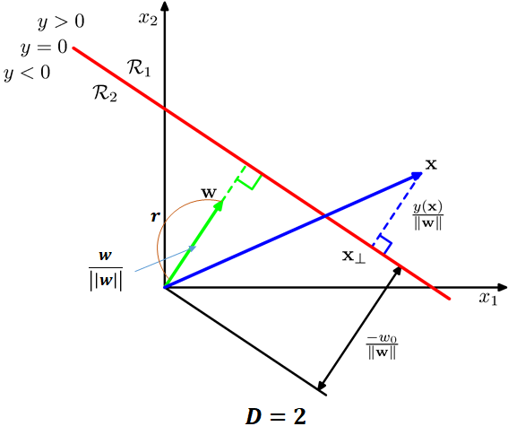 y(x)=0을 만족하는 x의 집합 (x가 D차원의 입력벡터일 때, D-1차원의 hyperplane)